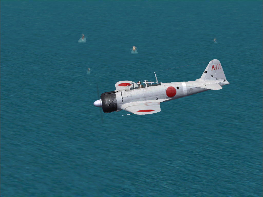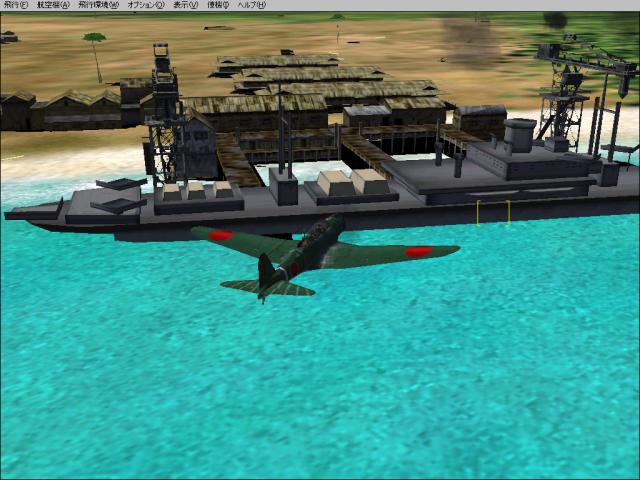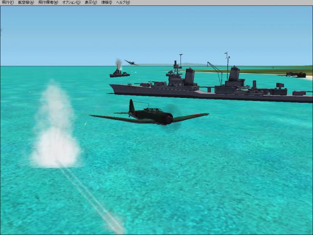 自作ミッションより、魚雷を発射直後の九七式艦上攻撃機です。 |