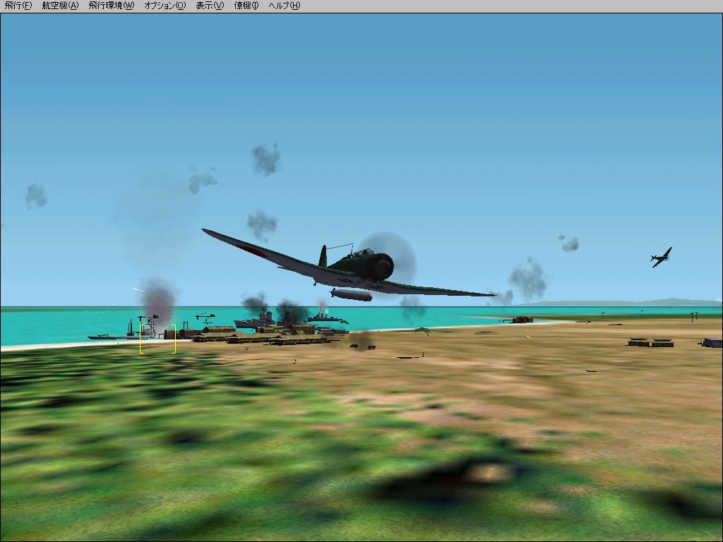 コンバットフライトシミュレーター2(以下CFS2)は前作と比べてグラフィックの描写が格段によくなっています。今回は弾で打たれたら穴が開きますし、煙や炎のリアリティも増しました。以下、私のプレイ中に撮影したスクリーンショットです。