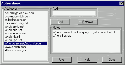 使いたいアドレスをダブルクリックするか、'Addresses'リストから使いたいアドレスを選んで Useボタンを選んでください。