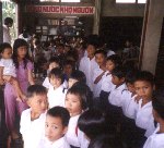 ここの担当者はPhung(フン)さんという方で、彼女にいろいろ話しを伺う。Phungさんはもともとホーチミン市内の出身だが、1975年にここに移って来て、今の仕事を続けて7年になるという。それまでは学校の先生をしていた。こちらのいろんな質問には彼女が答えてくれた。以下彼女の話をまとめると、ここに通って来ている子はみんな地元の子達ばかりである。ここには全部で1年生〜5年生までのクラスがある。