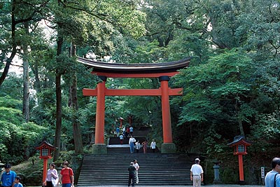 境内のほかの鳥居も同じ形式になっている、参道は幅が広く緩やかな傾斜