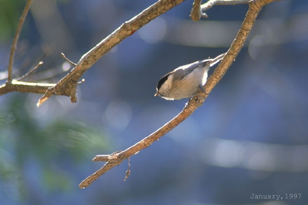 羽音に振り向くと、目の前にコガラがいた。
