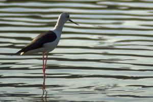 (1997/9 千葉県) シギ・チドリがよくわからない私ですが、この鳥は遠目にもすぐ分かりますよ(^^) ピンクの足がすらっと長くてオシャレな感じの鳥だけど、早足で歩く姿はなんかカッコ悪いです。