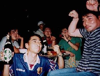 いう声。振り向くと3人の日本人。もちろん彼らも日本サッカーの応援だ。